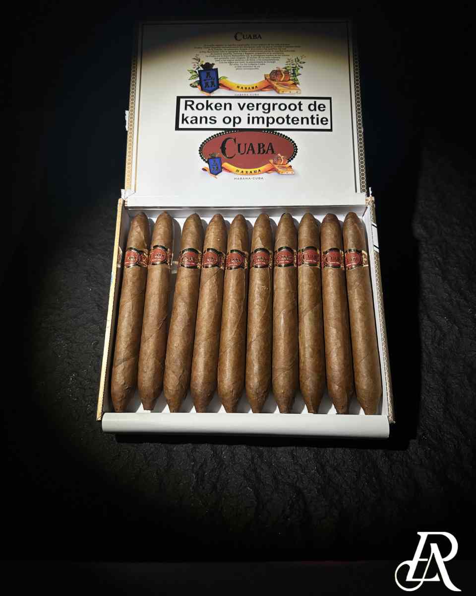'Cuaba'是来自古巴印第安土著的方言,解作用来点燃雪茄的一种灌木,有很好的燃烧特性。库阿巴于1996年首次在伦敦亮相,是古巴最新的雪茄品牌,也是自1968年第一个新的古巴雪茄品牌被引入到商业化生产。品牌的雪茄以不规则型(figurados) 所卷制,这种头尾都是尖锥形状的造型早在19世纪非常受欢迎,只有技术非常高超的捲烟师才能卷制出完美的双头尖锥造型雪茄。
